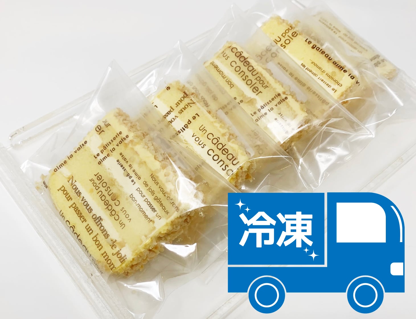 フランクフルタークランツは、ドイツ発祥のケーキ菓子です。スポンジの間にバタークリームを挟み、側面にはアーモンドシュガーをまぶしております。ほんのりとしたラム酒の香りも特徴です。本来はドーナツ型のお菓子ですが、食べやすい&お求めやすい一口サイズにスライスしました。